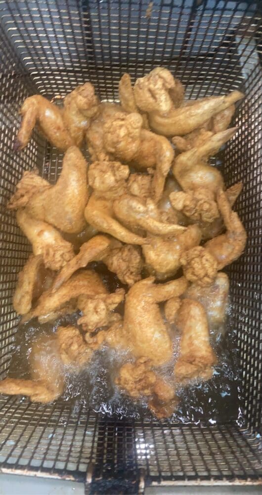 TWO PIECES OF CHICKEN,TOMATO, LETTUCE, PICKLES, AND BUFFALO RANCH SAUCE
